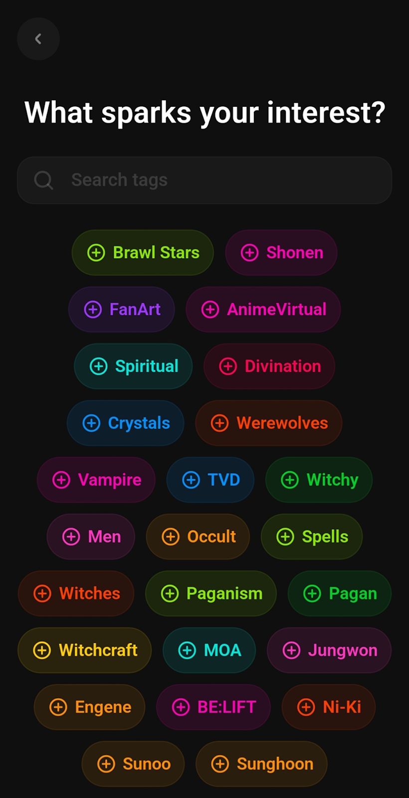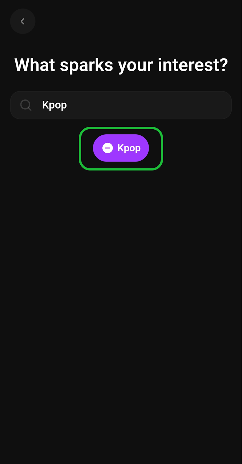 3. You can either add one of the interests displayed or search for it using the