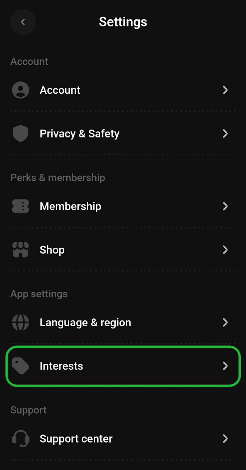Important: Interests will vary depending on the region you’ve selected for your discovery page.