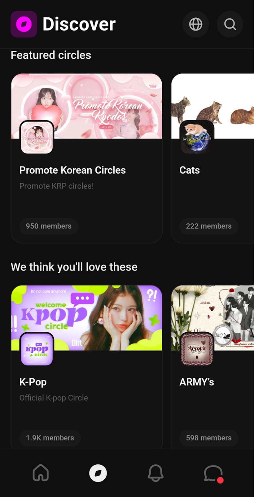 Did you know you could customize your discovery page? Setting a custom discovery page will help Kyodo recommend circles that will suit your interests.